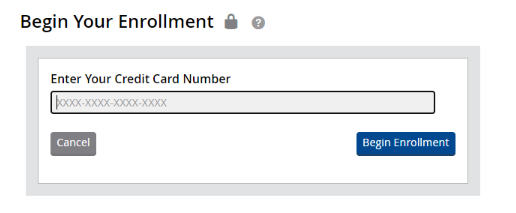 • To begin your enrollment process, Enter Your Credit Card Number on the screen.